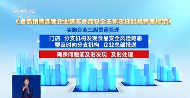 同时,《》要求实施企业贯通办理。企业总部、分支机构、门店均要成立并实施“日管控、周排查、月安排”工做轨制和机制,强调风险消息上下贯通,管控办法要逐级监视,门店、分支机构发觉食物平安风险现患要及时向分支机构、企业总部报送,确保问题能及时发觉、及时处置。